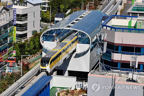 (대구=연합뉴스) 최수호 기자 = 전국 처음으로 모노레일로 건설한 대구도시철도 3호선(애칭 '하늘 열차')이 23일 정식 운행을 시작했다.