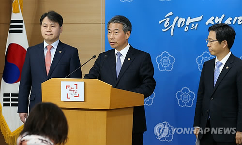 | △ 정부 "공무원 총파업은 불법…엄정 대응" 담화 발표 (서울=연합뉴스) 전수영 기자 = 정종섭 행정자치부장관(가운데)이 23일 오전 정부서울청사에서 부처 합동으로 불법 파업에는 엄정 대응하고 공무원과 교사들의 총파업 참여도 엄격히 금지한다는 내용을 담은 대국민 담화를 발표하고 있다. 왼쪽부터 김주현 법무부차관, 정 장관, 김재춘 교육부차관. swimer@yna.co.kr |