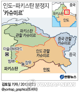 카슈미르는 1947년 인도와 파키스탄이 영국으로부터 각각 독립할 때부터 영유권 다툼을 벌였으며 이 때문에 두 차례 전쟁도 치렀지만 국경을 확정하지 못하고 양국이 사실상 분할 통치하고 있다.