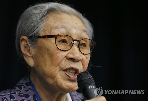 | △ 위안부 피해자 김복동 할머니 일본서 증언 (도쿄 AP=연합뉴스) 일제에 의한 위안부 피해자 김복동(88) 할머니가 23일 일본 도쿄에서 열린 심포지엄에서 "아베 정부는 진심으로 일본의 과거 잘못을 인정하고 뉘우쳐, 우리가 모두 죽기 전에 문제를 해결할 것"을 희망하고, 미국 정부에 대해 "아베 정부의 잘못된 행동을 바로잡아야 하며 아베 총리를 지지하지 말아야 한다"면서 "그것이 바로 진정한 친구로서 해야 할 일"이라고 말했다. kjw@yna.co.kr |