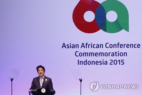 아베 총리는 22일 인도네시아 자카르타에서 열린 반둥회의 60주년 기념 아시아·아프리카 정상회의에 참석해 연설하면서 2차 세계대전에 대해 깊이 반성한다고 말했으며, 같은 날 저녁 시 주석과 회담을 열어 관계개선 의지를 표명하고 아시아인프라투자은행(AIIB) 등 현안을 논의했다.