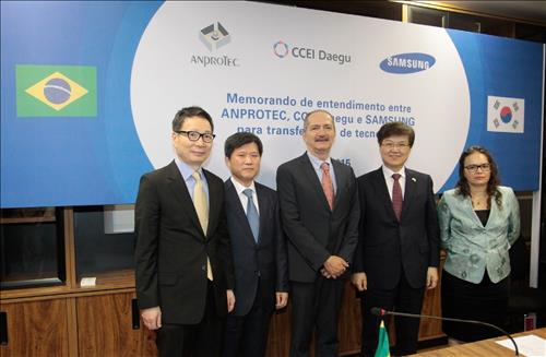 삼성전자와 대구 창조경제혁신센터는 24일(현지시간) 브라질리아 과학기술부 청사에서 현지 혁신기업진흥협회 안프로텍(Anprotec)과 혁신센터 모델 전파 및 브라질 청년창업·스타트업(start-up·신생기업) 육성협약(MOU)을 맺었다.