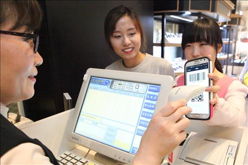 | △ 알리페이로 결제하는 중국인 고객의 모습. <롯데백화점 제공> |