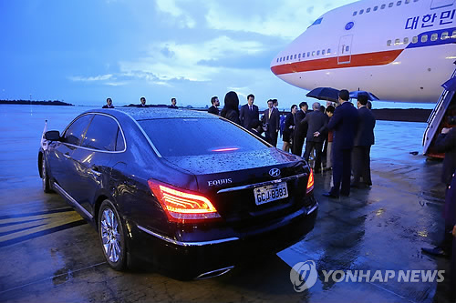 (서울=연합뉴스) 김윤구 기자 = 박근혜 대통령이 브라질 순방 중 국산차인 현대 에쿠스를 이용해 눈길을 끌고 있다.