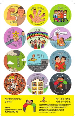 (서울=연합뉴스) 채새롬 기자 = 인권단체 '인권재단사람'은 세계 여성의 날, 세계 난민의 날, 세계 에이즈의 날 등 인권 관련해 기억해야 할 날 12일을 선정하고 이를 나타내는 스티커를 제작해 판매한다고 26일 밝혔다.