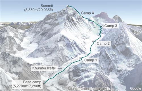 이들이 눈사태를 만난 건 베이스캠프에서 출발해 '캠프1'에 막 도착해 등정 1단계를 마쳤을 때다.