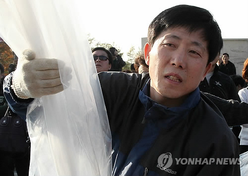 | △ 박상학 자유북한운동연합 대표. 박 씨는 지난 3월 대북전단 살포를 당분간 전면 중단하겠다고 밝혔으나 4월 21일 인천시 강화군에서 대북전단 15만장과 영화 '더 인터뷰' USB·DVD 각 2천500개씩 총 5천개를 풍선에 달아 날려보냈다. <<연합뉴스DB>> |