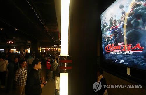 27일 영화진흥위원회 영화관 입장권 통합전산망에 따르면 어벤져스2는 지난 주말인 24∼26일 전국 1천843개 상영관에서 관객 281만9천112명(매출액 점유율 90.5%)을 동원해 단숨에 1위로 올라섰다.