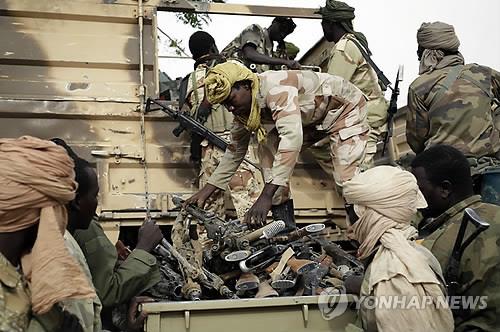 | △ 나이지리아 북동부 다마삭에서 테러조직 보코하람에 살해된 것으로 보이는 시신 수백구가 발견됐다고 27일(현지시간) 주민과 관리들이 전했다. 사진은 지난달 18일 다마삭에서 차드군이 보코하람으로부터 몰수한 무기를 모으는 모습. 2015.4.28. (AP=연합뉴스) |