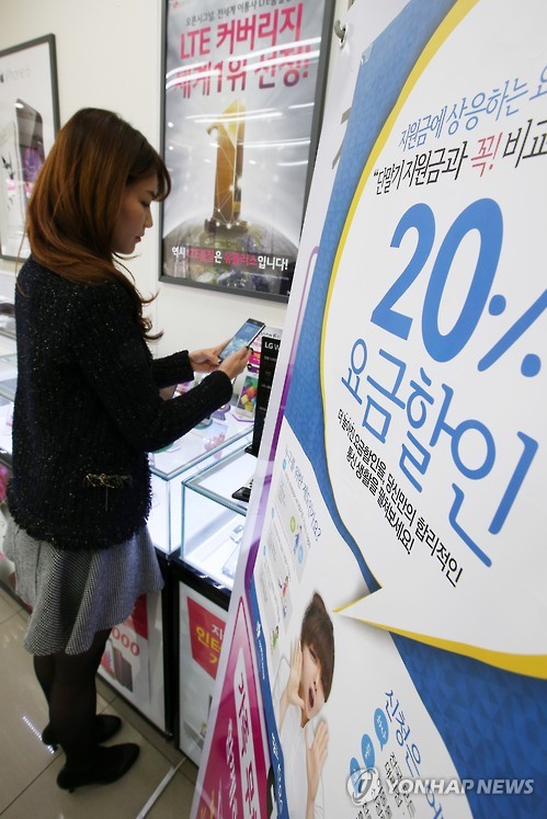 정부는 지난 24일부터 휴대전화를 개통할 때 단말기 지원금 대신 선택할 수 있는 요금할인율을 12%에서 20%로 올렸다. 그러자 이를 누구나 통신료를 20% 할인받을 수 있다고 잘못 이해한 소비자들의 전화가 빗발쳤다.