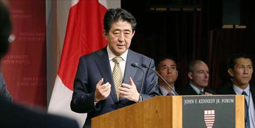 | △ (케임브리지<미국 매사추세츠> 교도=연합뉴스) 아베 신조(安倍晋三) 일본 총리가 27일(현지시간) 미국 하버드대에서 강연하고 있다. |