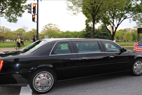 | △ 아베 신조 일본 총리가 27일(현지시간) 오후 과거사에 대한 사과 없이 워싱턴DC의 홀로코스트 박물관을 방문한 뒤 건물을 빠져나가고 있다. 뒷자리에 탄 아베 총리의 오른쪽 얼굴 옆모습 일부가 카메라에 잡혔다. 2015.4.28 |
