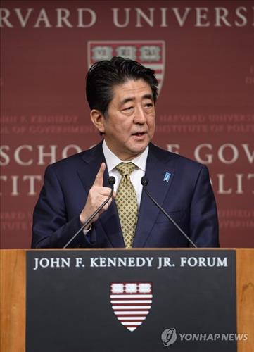 | △ 하버드대에서 강연하는 아베 총리(EPA.연합뉴스) |