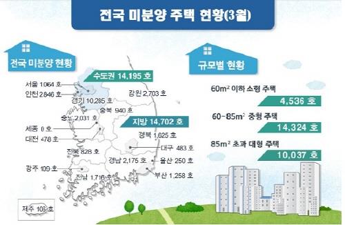 '악성 미분양'으로 불리는 준공 후 미분양 주택 물량도 3월 말 기준 1만3천507가구로, 전달보다 6.6% 감소했다.