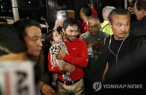 (서울=연합뉴스) 안홍석 기자 = 매니 파키아오(37·필리핀)가 플로이드 메이웨더 주니어(38·미국)와의 '세기의 대결'을 앞두고 결전지인 미국 라스베이거스에 입성했다.
