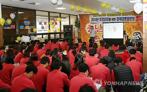 | △ 경북대병원 노조가 29일 파업에 들어가기로 했다. 사진은 지난해 11월 경북대병원 노조의 파업 출정식 모습. << 연합뉴스DB >> |