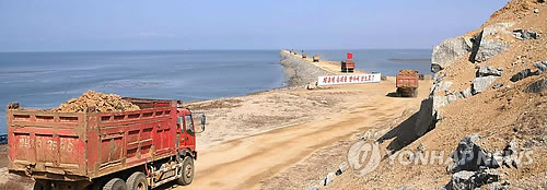 이를 위해 170만㎡의 흙을 퍼내고 17만㎡의 장석 공사, 8천800여m의 방조제 마감막이공사를 진행했다고 신문은 설명했다.