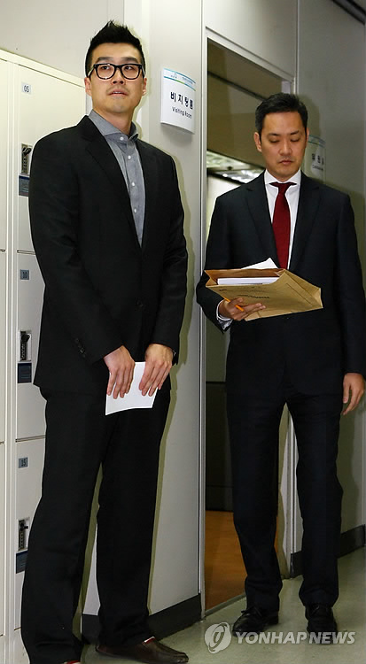 | △ 통신심의소위원회 출석한 레진코믹스 관계자 (서울=연합뉴스) 박영서 기자 = 이성업 레진엔터테인먼트 이사(왼쪽)가 변호인과 함께 28일 오후 서울 방송통신심의위원회 통신심사소위원회에서 진술하기 위해 대기하고 있다. |