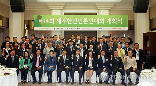 (서울=연합뉴스) 왕길환 기자 = 사단법인 세계한인언론인연합회(세계한언·회장 장마리아)가 국가기간뉴스통신사 연합뉴스(사장 박노황)와 함께 주최하는 2015년 춘계 세계한인언론인대회가 28일 오후 서울 중구 태평로 한국프레스센터에서 막을 올렸다.