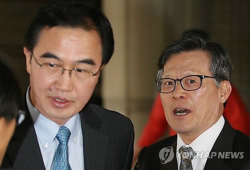 | △ 항소심 첫 공판 참석한 백종천-조명균 (서울=연합뉴스) 임헌정 기자 = 2007년 남북정상회담 회의록 폐기를 공모한 혐의(대통령기록물관리에관한법률위반)로 기소된 백종천 전 청와대 외교안보실장(오른쪽)과 조명균 전 청와대 안보정책비서관이 28일 오후 서울 서초동 서울고등법원에서 열린 항소심 첫 공판에 참석한 뒤 법정을 나서고 있다. |