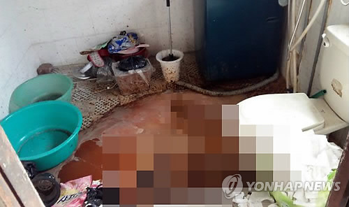 변기 주변으로 바닥에 온통 인분이 널려 있었고, 이미 오래된 듯 굳어 있었던 것이다.