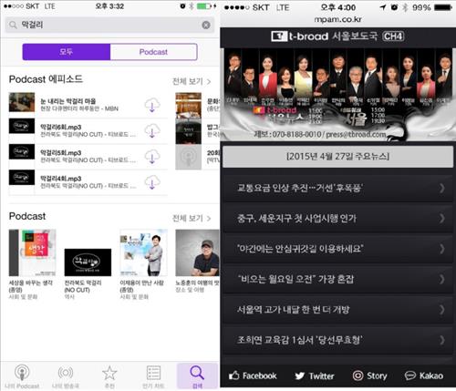 | △ 티브로드 중부보도제작본부의 '막걸리' 팟캐스트와 서울보도제작국의 '모바일 뉴스매거진' |