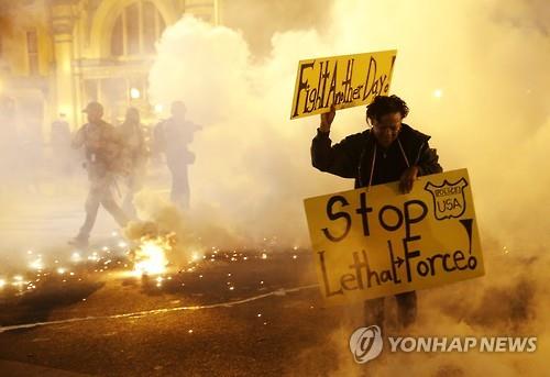 야간 통금에도 볼티모어 시위 계속…경찰 연막탄 발사