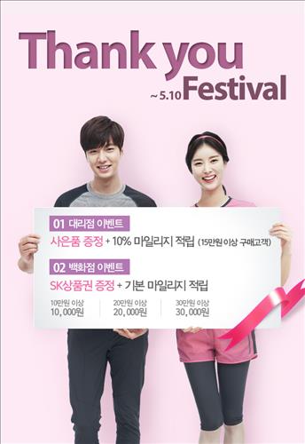 아이더 전국 백화점 매장 구매고객에게 구입금액의 10%를 SK 상품권으로 준다.