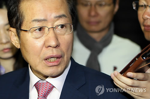 | △ 출근길 입 연 홍준표 경남지사 (창원=연합뉴스) 최병길 기자 = '성완종 리스트'에 오른 홍준표 경남도지사가 29일 오전 경남도청으로 출근하며 기자들의 질문에 대답하고 있다. |