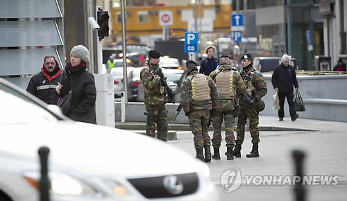 | △ (AP=연합뉴스) 유럽연합(EU) 정상들이 2월 12일 벨기에 브뤼셀에서 열린 특별 정상회의에서 지난달 프랑스 파리 테러 이후 고조된 EU 내 테러 위협에 대처하기 위한 공동 대응 방안에 합의했다. 이 대테러 공조 방안은 회원국 간 항공기 탑승객 명단 공유, 국경 출입 관리 강화와 인터넷에서 극단주의를 부추기는 콘텐츠의 적발 및 삭제 등을 골자로 하고 있다. 사진은 지난 2일 벨기에 군인들이 브뤼셀의 EU 본부 주변을 순찰하는 모습. |