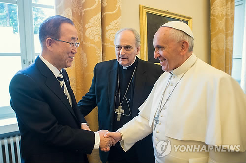 (제네바=연합뉴스) 류현성 특파원 = 프란치스코 교황이 반기문 유엔 사무총장을 만난 자리에서 남북한 통일을 위해 매일 기도한다고 말했다고 바티칸 주재 한국대사관 김경석 대사가 29일(현지시간) 밝혔다.