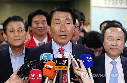 | △ 소감 밝히는 안상수 후보 (인천=연합뉴스) 윤태현 기자 = 4·29 재·보궐선거 인천 서구강화을에서 당선이 확정이 되자 새누리당 안상수 후보가 29일 오후 인천시 강화군 자신의 선거사무소에서 소감을 밝히고 있다. 2015.4.29 tomatoyoon@yna.co.kr |