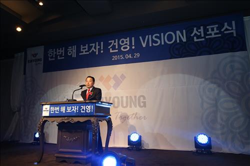 건영은 29일 오후 서울 강남구 삼성동 더 라빌에서 각계 인사와 임직원 등 800여명이 참석한 가운데 '한번 해보자! 건영 2025 비전 선포식'을 했다고 30일 밝혔다.
