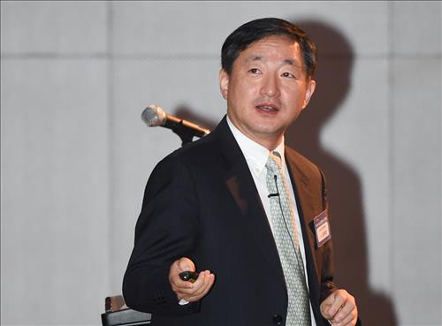 | △ 장세진 한국과학기술원(KAIST) 교수가 30일 서울 삼성동 코엑스인터컨티넨탈호텔에서 한국무역협회(KITA) 주최로 열린 '제94회 KITA 최고경영자 조찬회'에서 '세계경제 불확실성하의 경영전략'을 주제로 강연했다. |