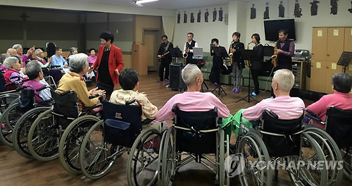 | △ 노인요양시설 입소자들이 음악공연을 보고 있다.(연합뉴스 자료사진) |