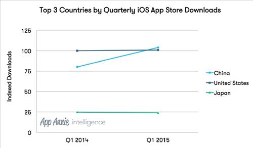 1일 모바일앱 분석 전문기업 앱애니가 발간한 'iOS 앱스토어 다운로드에서 미국을 제친 중국' 보고서에 따르면 중국은 앱스토어 다운로드가 1년 새 30% 증가하면서 2011년 1분기부터 미국이 지켜온 1위 자리를 탈환했다.