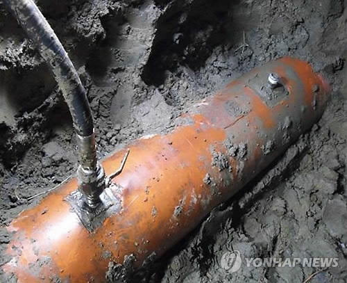 | △ 과거 송유관 기름절도 적발 사례. 송유관에 유압호스와 밸브를 연결해 놓은 모습. <<연합뉴스DB>> |