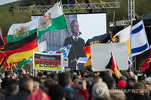 | △ 2015년 4월 13일(현지시간) 독일에서 열린 '유럽의 이슬람화를 반대하는 애국적 유럽인들'(PEGIDA·페기다) 집회 (EPA=연합뉴스DB) |