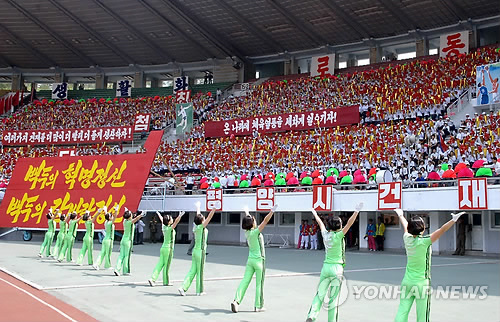 | △ 북한이 1일 '5·1절'(노동절)을 맞아 평양 김일성경기장에서 수도건설자의 체육경기를 개최한 모습으로 조선중앙통신이 보도했다. 2015.5.2<<연합뉴스DB>> |