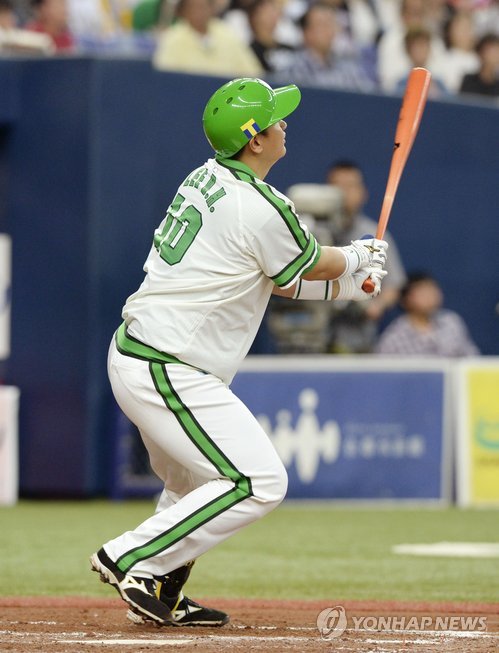 | △ 이대호, 2경기 연속 홈런…시즌 6호 (오사카 교도=연합뉴스) 일본프로야구에서 활약하는 이대호(33·소프트뱅크 호크스)가 이틀 연속 9회에 아치를 그리며 시즌 6홈런을 기록했다. 이대호는 2일 일본 오사카 교세라돔에서 열린 오릭스 버펄로스와 퍼시픽리그 방문 경기에 5번 지명타자로 선발 출전, 소프트뱅크가 1-4로 끌려가던 9회초 1사 주자 없는 상황에서 좌월 솔로 홈런을 터트렸다. 2015.5.2 chungwon@yna.co.kr |