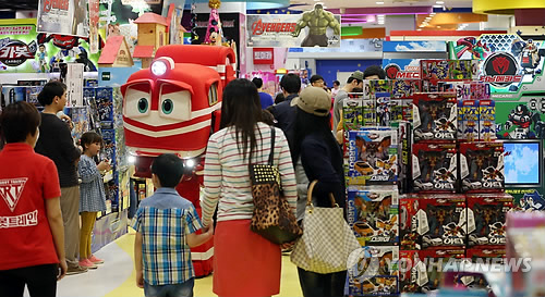 | △ 어린이날을 하루 앞둔 4일 오후 서울의 한 대형마트 장난감 매장을 찾은 어린이와 부모들이 장난감을 고르고 있다. |