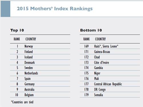 세이브더칠드런 관계자는 "올해도 선진국과 후진국의 모성지수 격차가 크다"며 "어머니와 어린이의 건강, 복지가 절실한 면을 보여준다"고 설명했다.