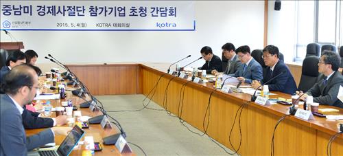(서울=연합뉴스) 이봉준 기자 = 코트라는 4일 서울 서초구 사옥에서 최근 박근혜 대통령의 중남미 순방에 동행했던 기업들의 현지 상담회 성과를 점검하고 후속 지원방안을 논의하기 위한 '중남미 순방 경제사절단 참가기업 후속 간담회'를 가졌다고 5일 밝혔다.