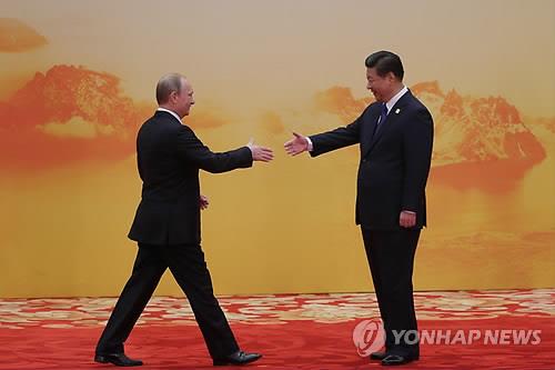 | △ 악수하는 중-러 정상.(EPA=연합뉴스DB) |