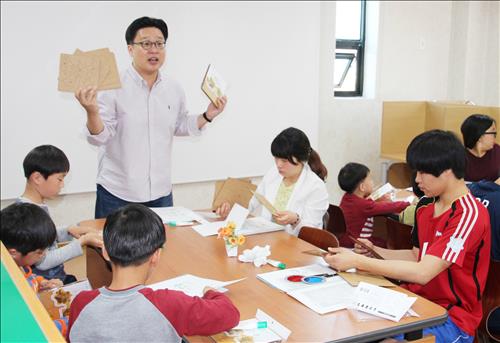 치킨마루의 후원으로 마련된 올해 '찾아가는 독도학교'의 첫 방문지는 보육시설인 '파주 평화원'. 이곳에서 그는 초·중학생들에게 독도가 왜 한국 땅인지 명확한 이유를 설명하고 나서 독도 모형을 함께 만들었다.