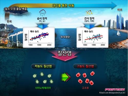 이 교수는 북태평양에서 측정한 질산염, 인산염 농도 자료와 질산염 유입연도 추정모델을 통합한 새로운 기법으로 동북아시아의 경제성장 시기와 일치하는 1970년대 이후 질산염이 급격하게 증가했고 그 주요 원인이 대기를 통한 질소오염물질 유입이라는 사실을 처음으로 증명했다.