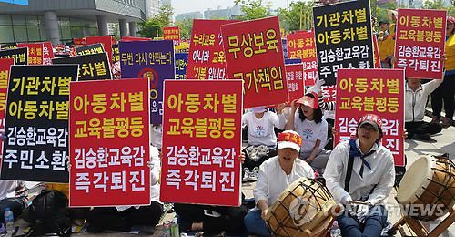 특히 전북어린이집연합회는 지난 1일 '김승환 교육감 주민소환 퇴진운동 선포 총력투쟁 결의대회'를 열어 김 교육감에 대한 퇴진 및 주민소환 운동 전개를 선포했고 6일에도 관련 집회를 열었다.