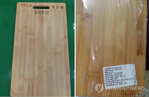 | △ 식약처, 발암물질 초과 '대나무 도마' 회수 (서울=연합뉴스) 식품의약품안전처는 발암물질이 초과 검출된 중국산 대나무 도마 제품을 판매 중단하고 회수한다고 6일 밝혔다. ( 식약처 제공 ) |