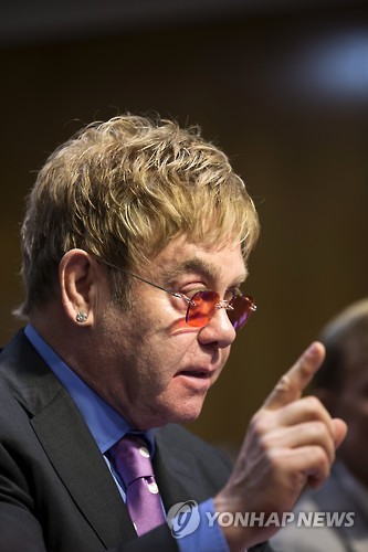 | △ (AP=연합뉴스) 세계적 팝스타 엘튼 존이 6일(현지시간) 미국 상원 세출위원회 국무·해외활동 소위원회에 증인으로 출석해 발언하고 있다. |