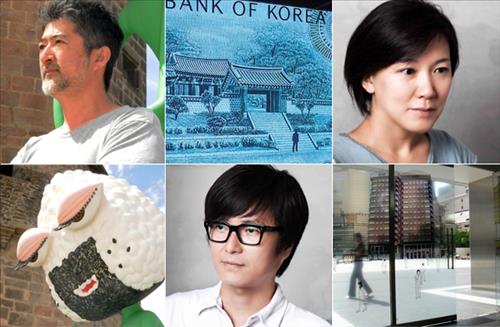 | △ 5월 23일 도쿄 한국문화원 한마당 홀에서 열리는 '한·일 중견작가, 현대 미술을 말하다' 토쿄쇼 출연진. 아이다 마코토(사진 윗줄 좌측), 문경원(윗줄 우측), 전준호(아랫줄 가운데) |